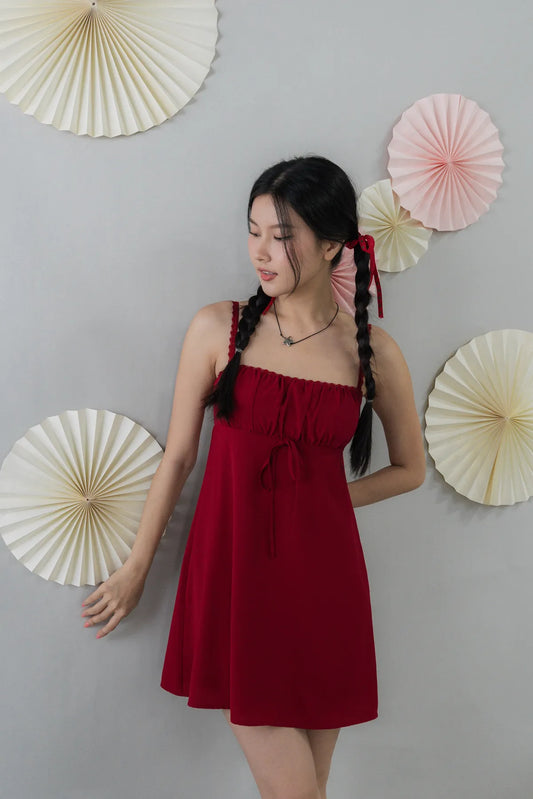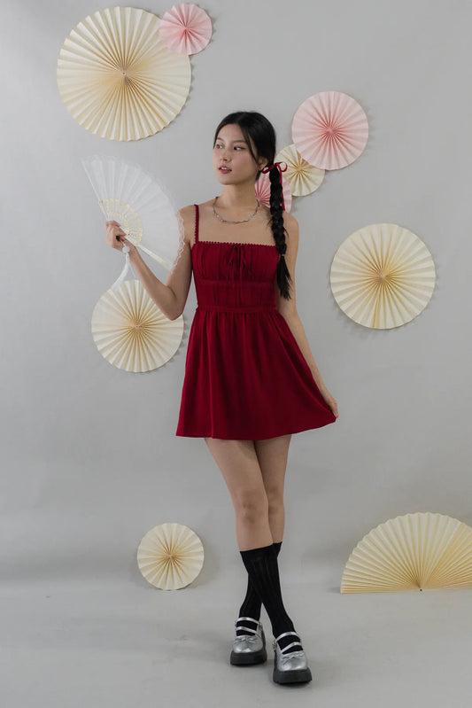 Elysia Ribbon Pintuck Padded Mini Romper Dress