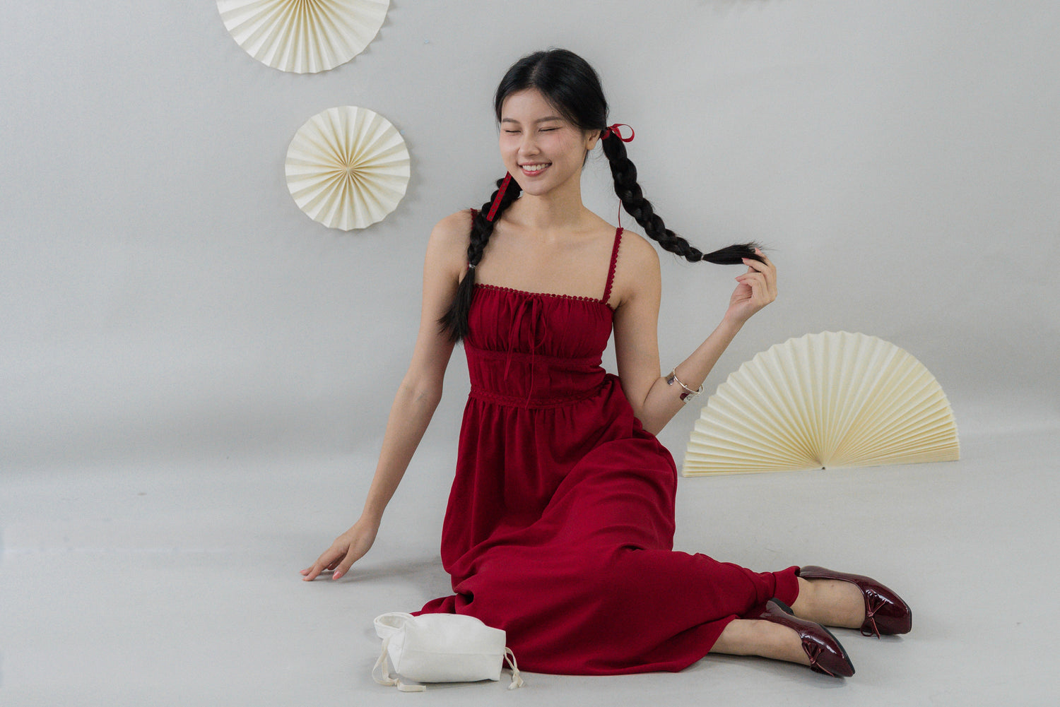Elysia Ribbon Pintuck Padded Maxi Dress