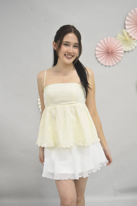 Ellie Ribbon Pintuck Padded Babydoll Top