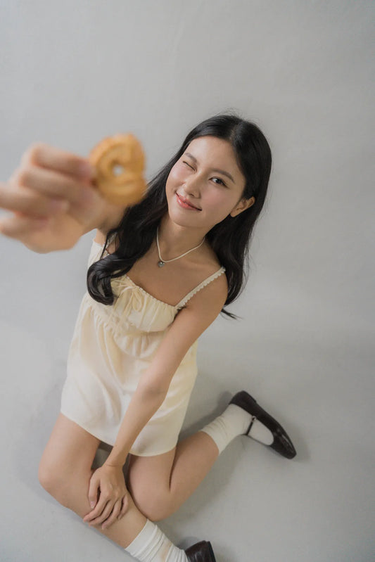 (Backorder 2) Kiara Lace Trim Ribbon Padded Babydoll Top