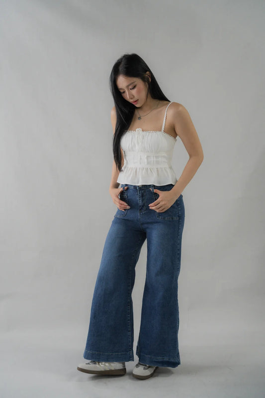 Sammie Front Pleat Relaxed Cut Long Jeans
