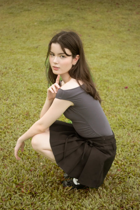 Carly Front Pleat A-Line Belted Mini Skort in Black