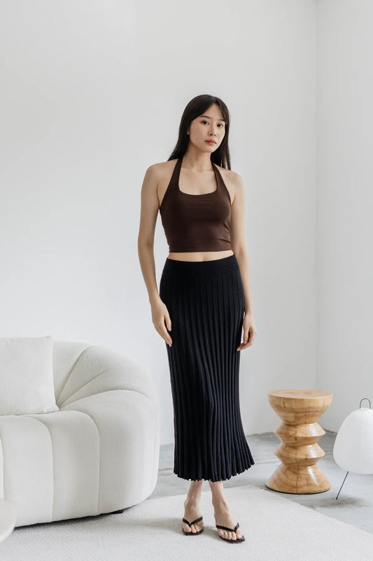Carly Front Pleat A-Line Belted Mini Skort in Black