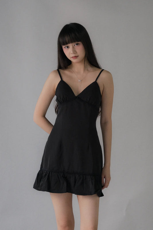 Kayla V-Neck Ruffled Hem Padded Mini Dress