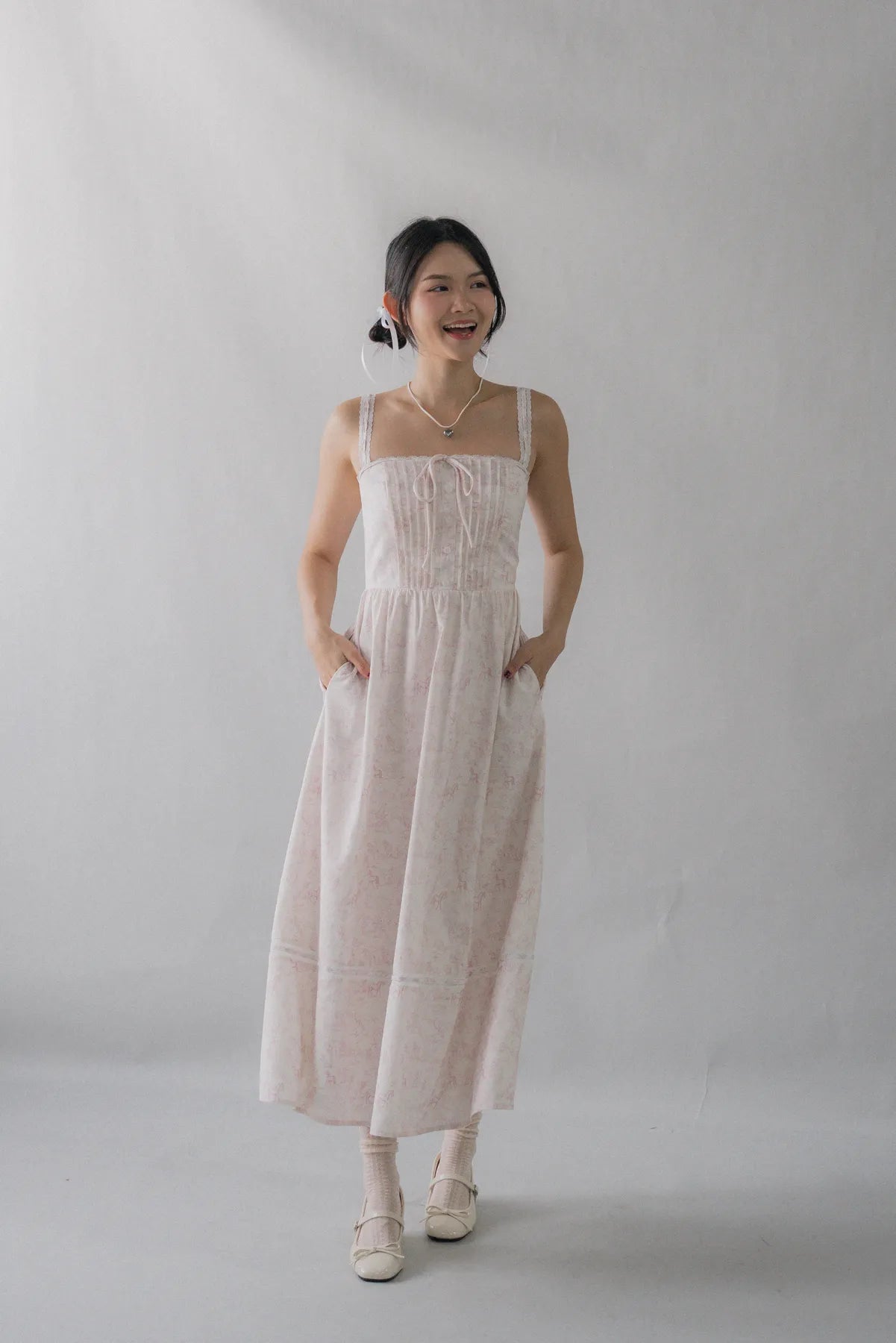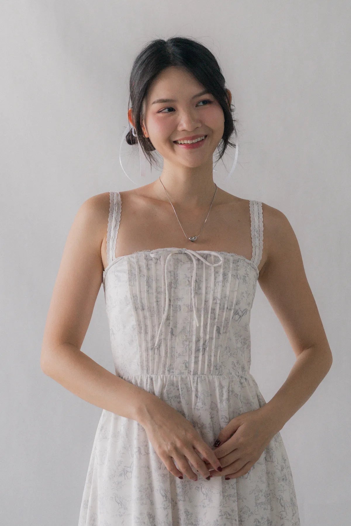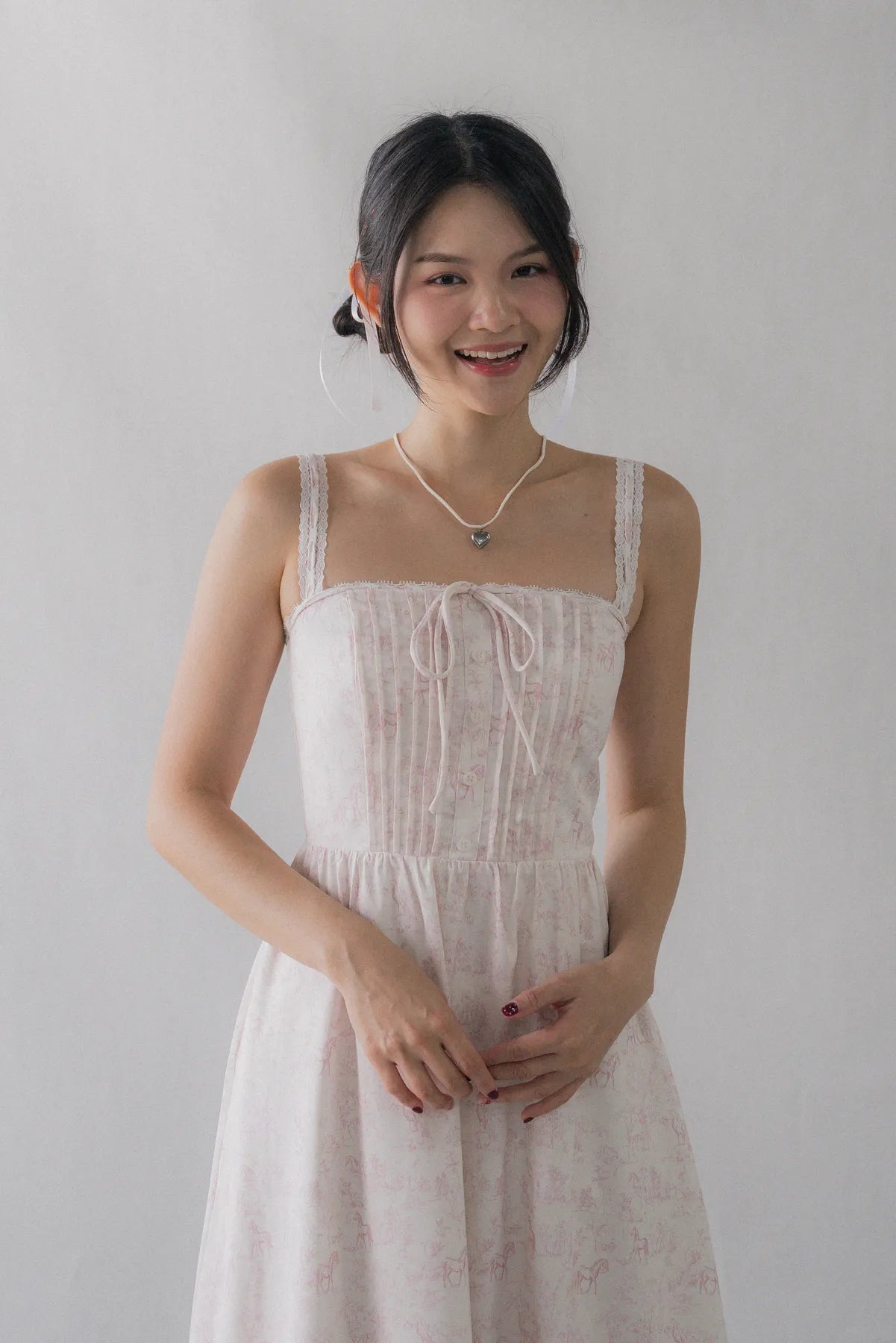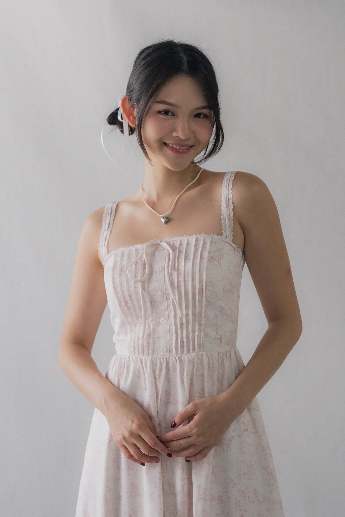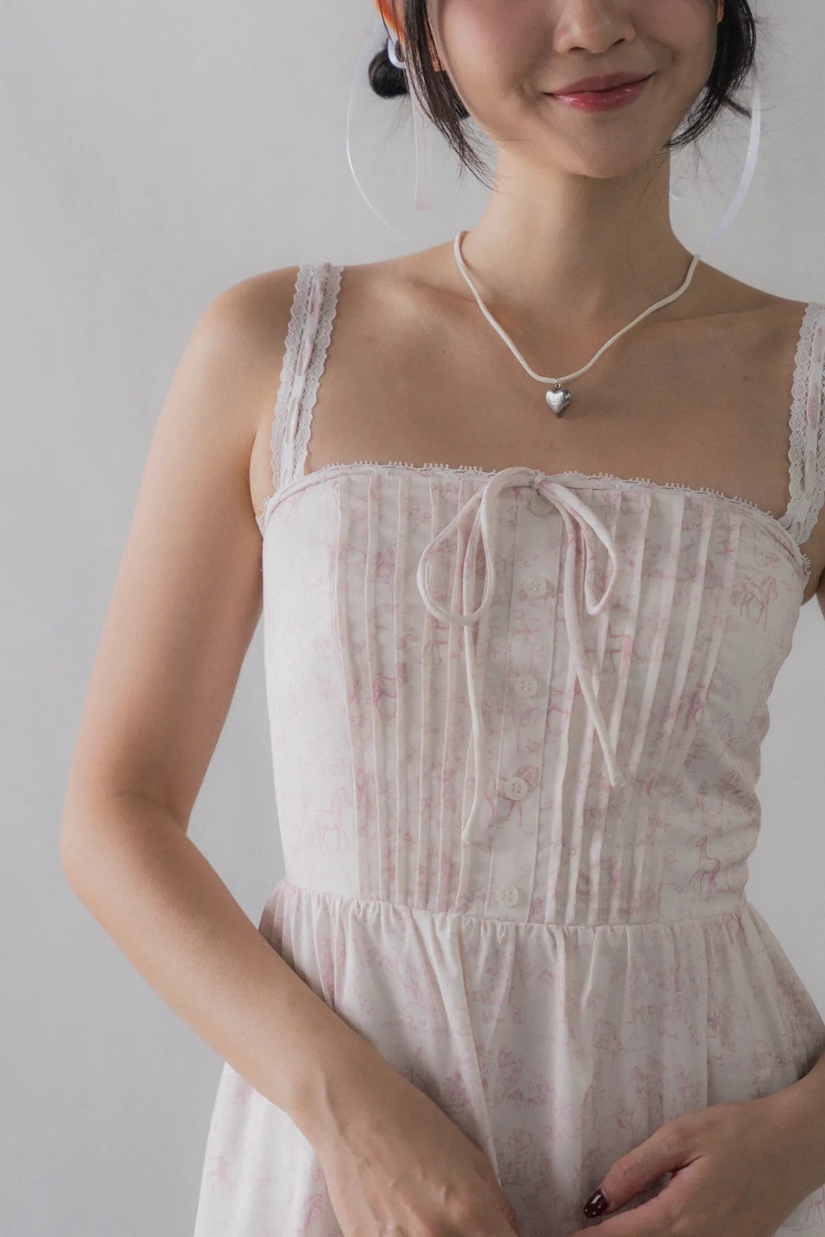 Ava - features the signature Uma horse pattern print with delicate front pintuck detailings. Designed with adjustable lace trim spaghetti straps and a flowy maxi length, it offers an elegant, feminine silhouette with effortless movement.