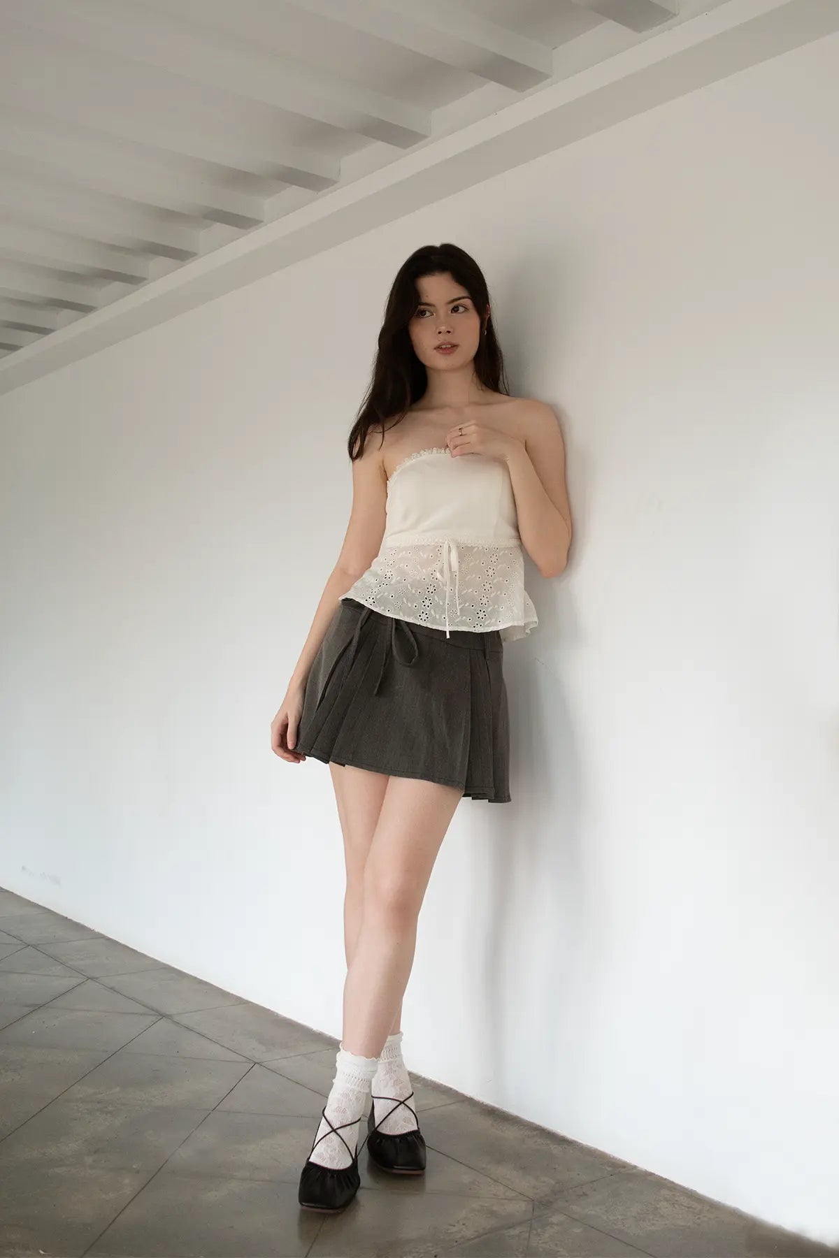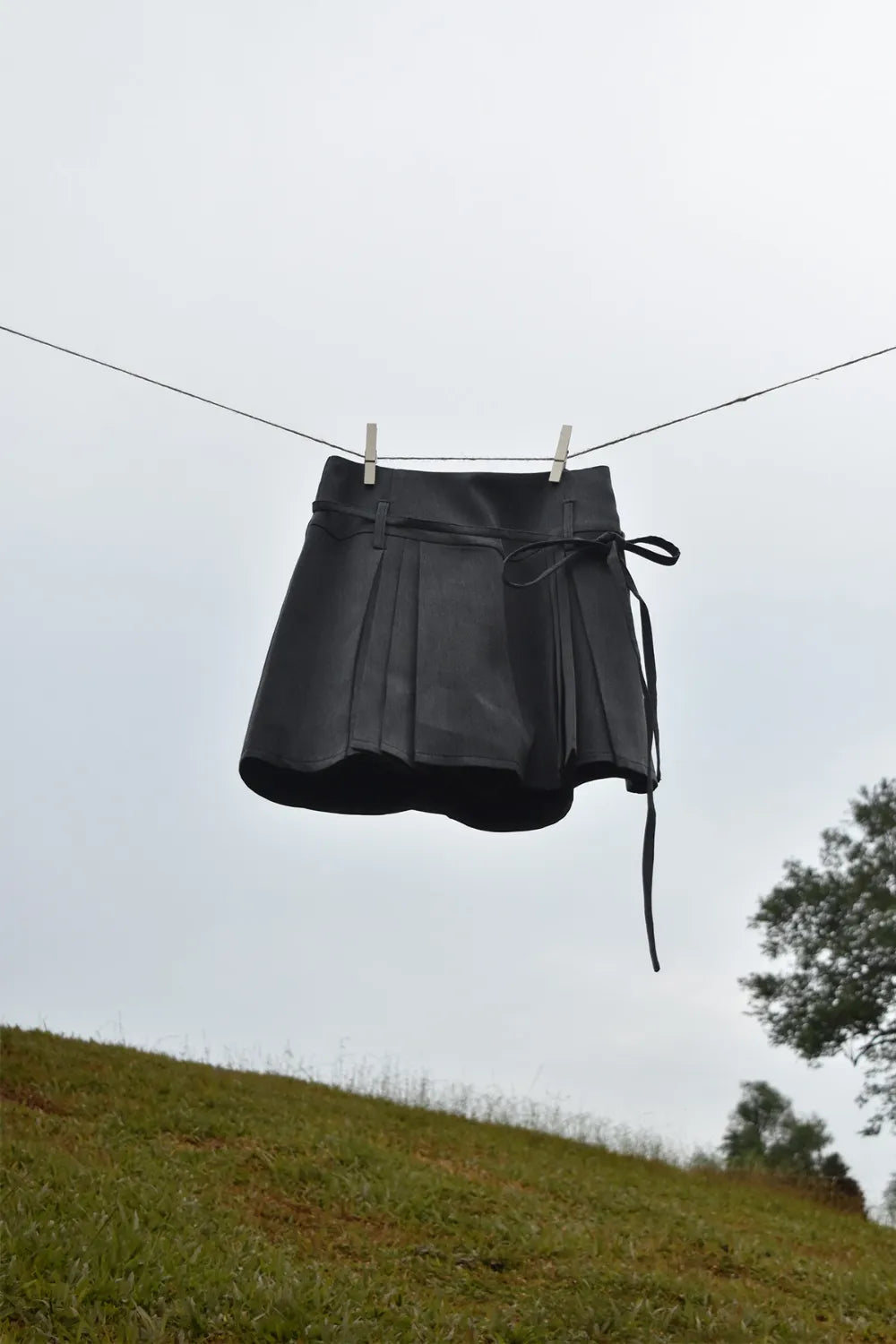 Carly Front Pleat A-Line Belted Mini Skort in Grey