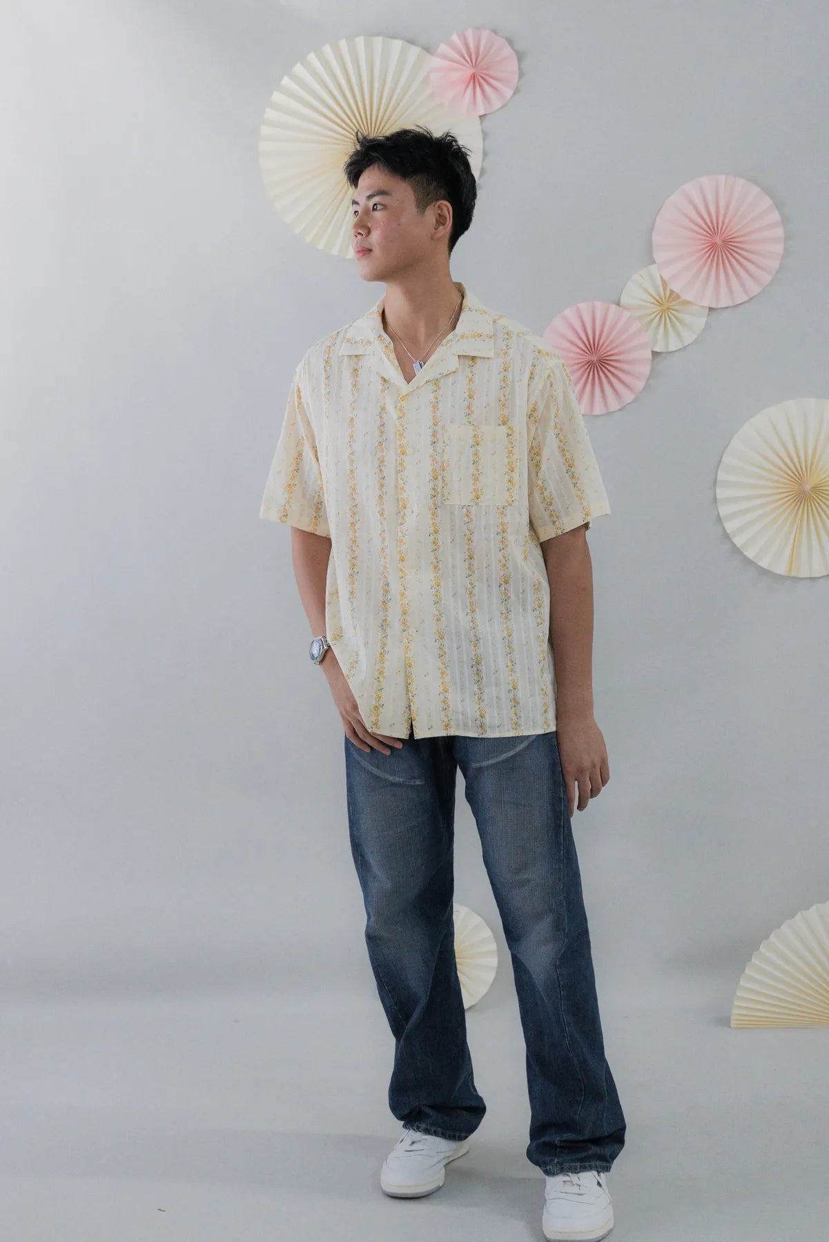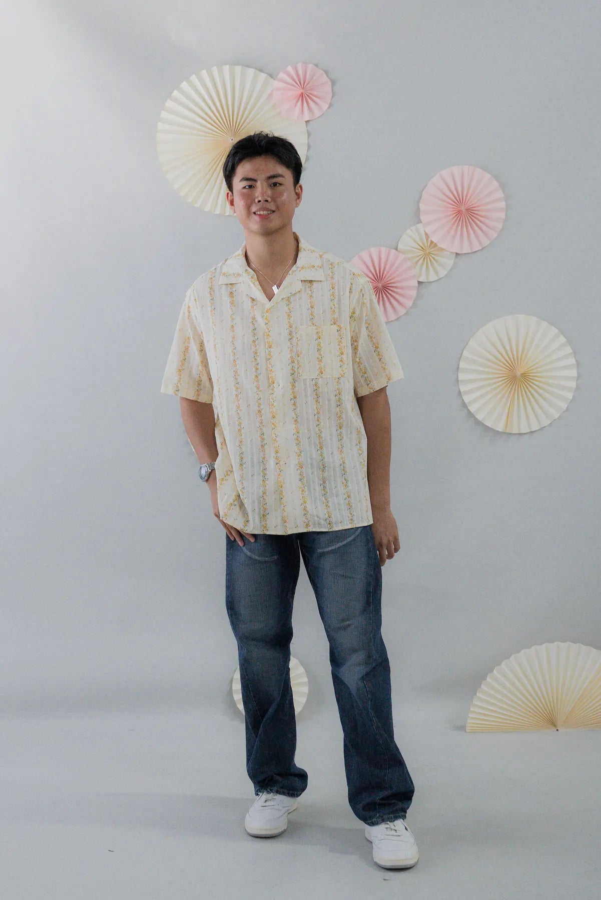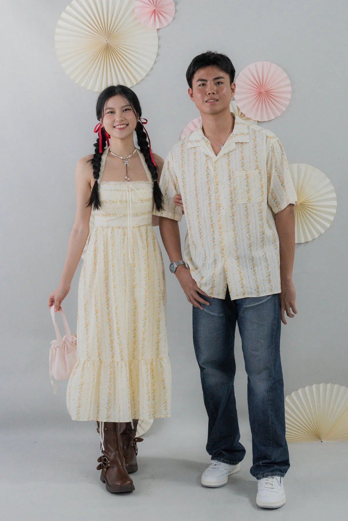 Haru Shirt features blue and yellow florals with a cream base. Designed as part of a matching family set, it offers an easy, polished look with relaxed comfort for everyday wear.