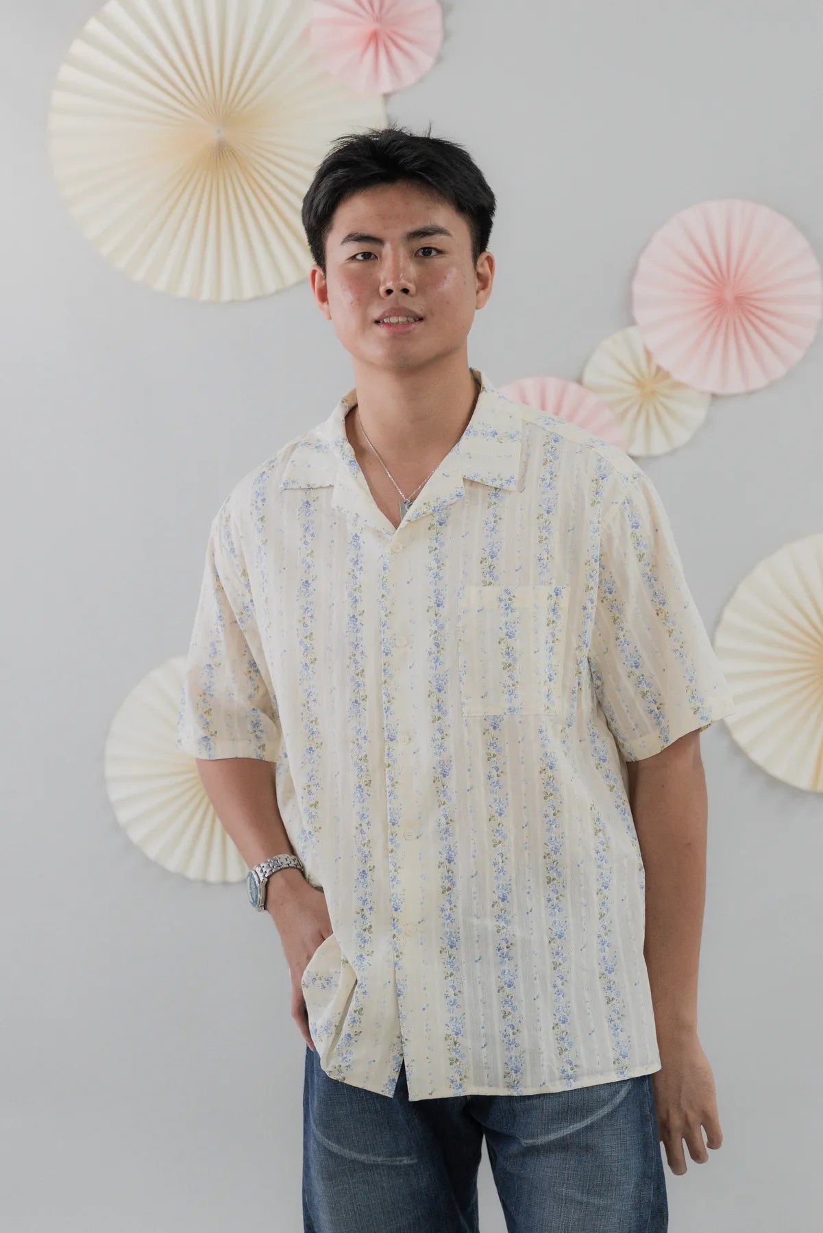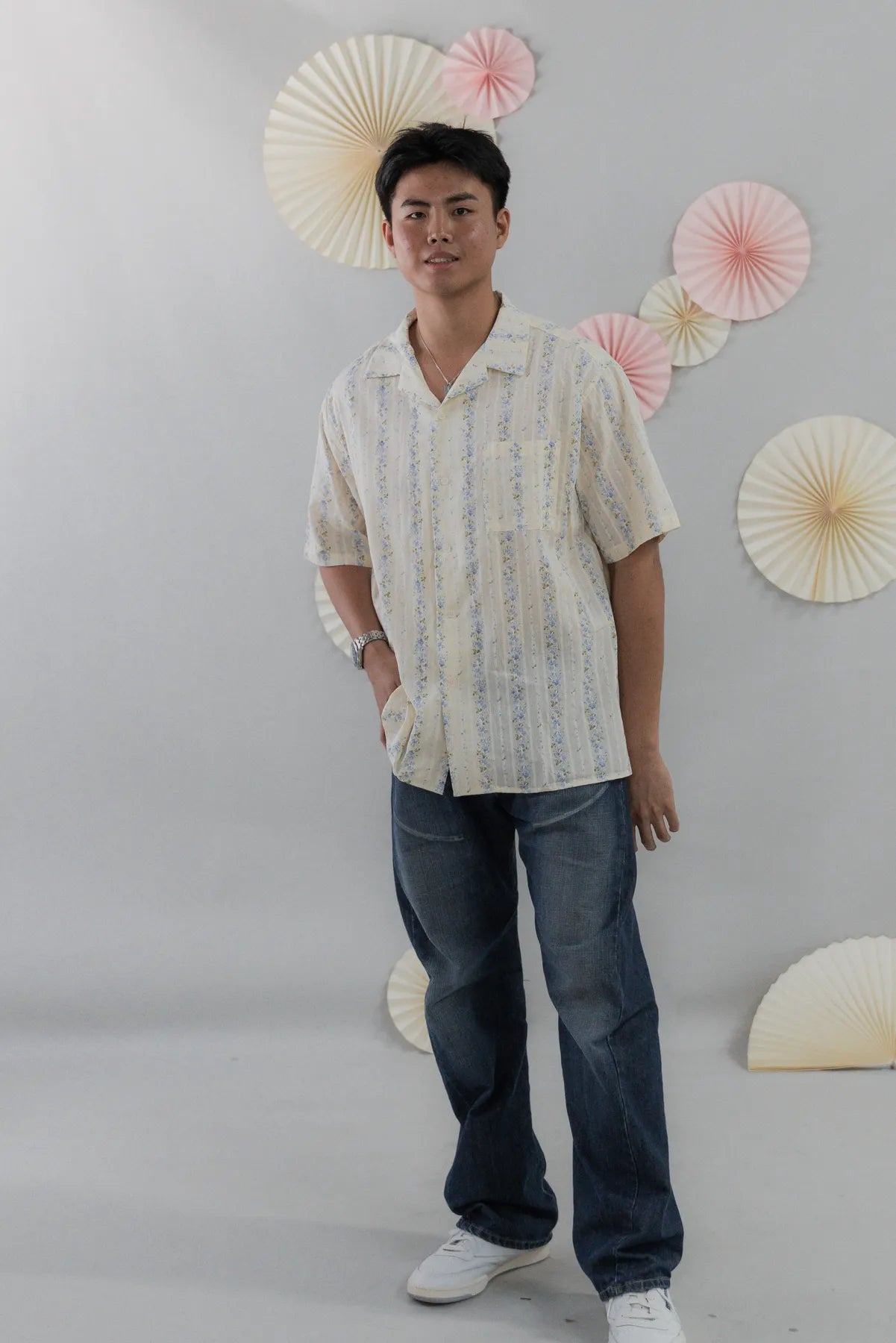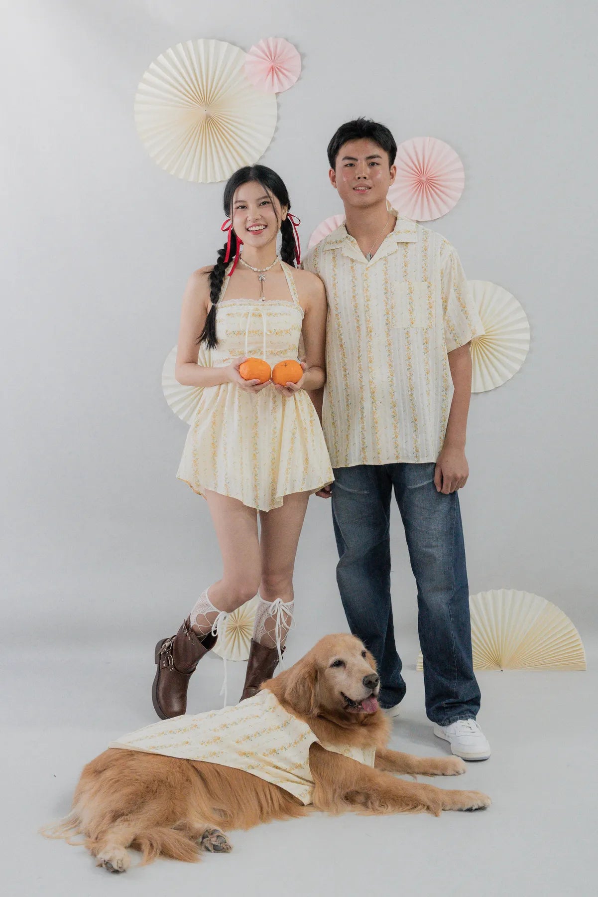 Haru Shirt features blue and yellow florals with a cream base. Designed as part of a matching family set, it offers an easy, polished look with relaxed comfort for everyday wear.