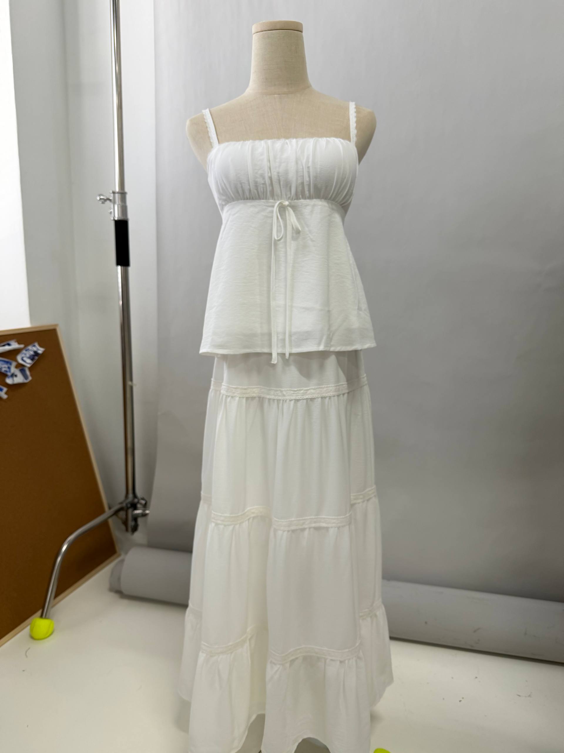 Eden is a whimsical piece that flows gracefully with every step. Designed with delicate lace detailing along its tiered layers, it exudes romantic charm and soft femininity. Made from the same airy fabric as the Kiara top — perfect to wear together as a dreamy coordinated set.