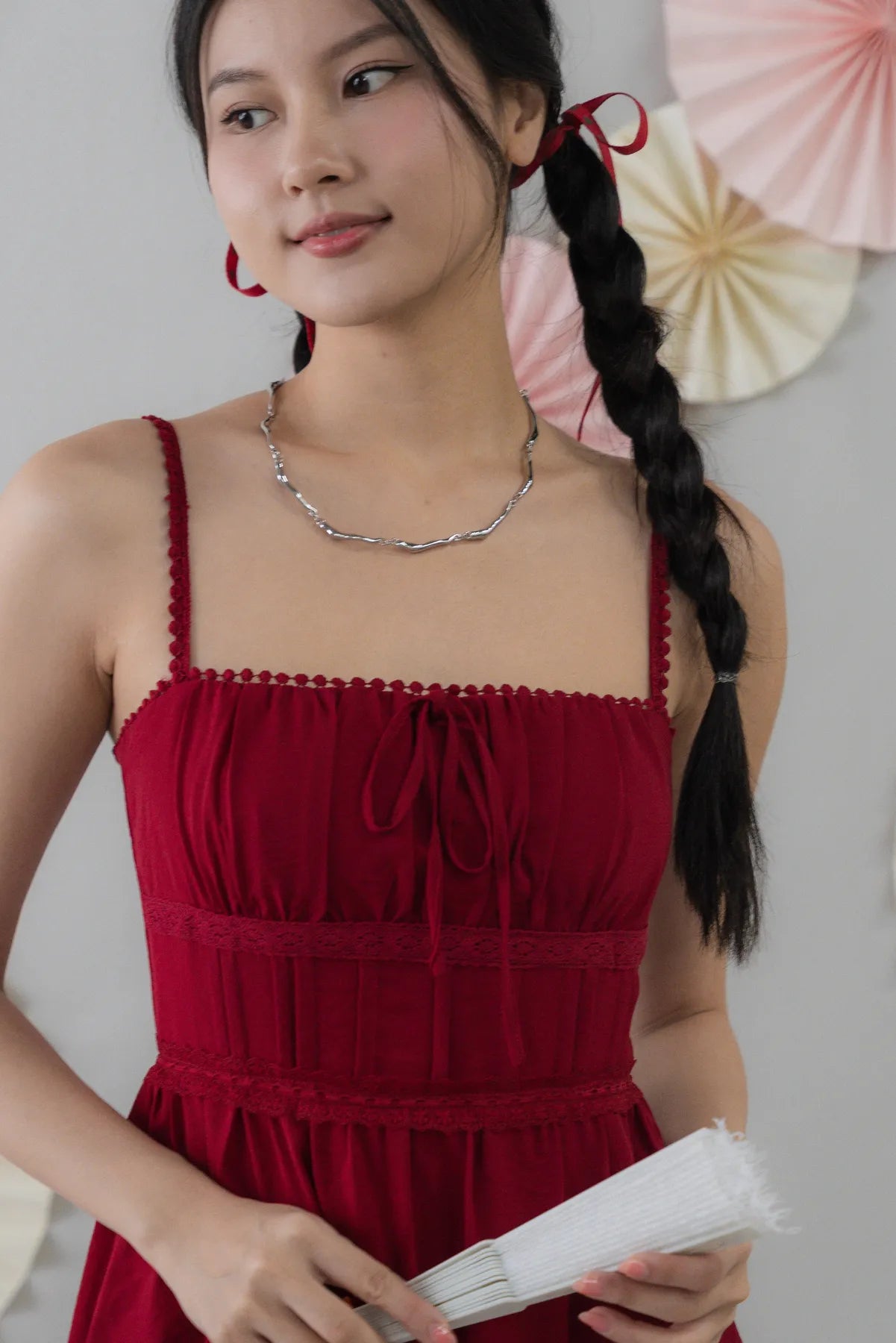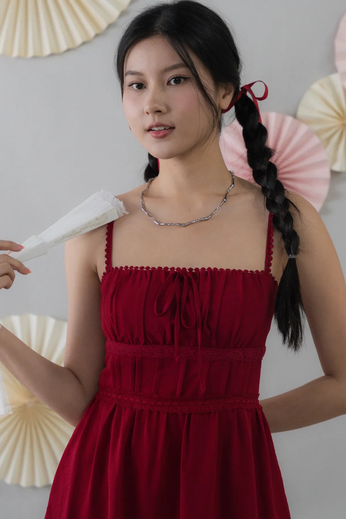 Elysia – When Ellie goes full-length. A dressier take on our beloved babydoll top, Elysia carries the same pintuck front, dainty ribbon bow, and lace-trimmed straps you love—now with a swishier skirt. It’s sweet, breezy, and ready to twirl through your softest, sunniest days.