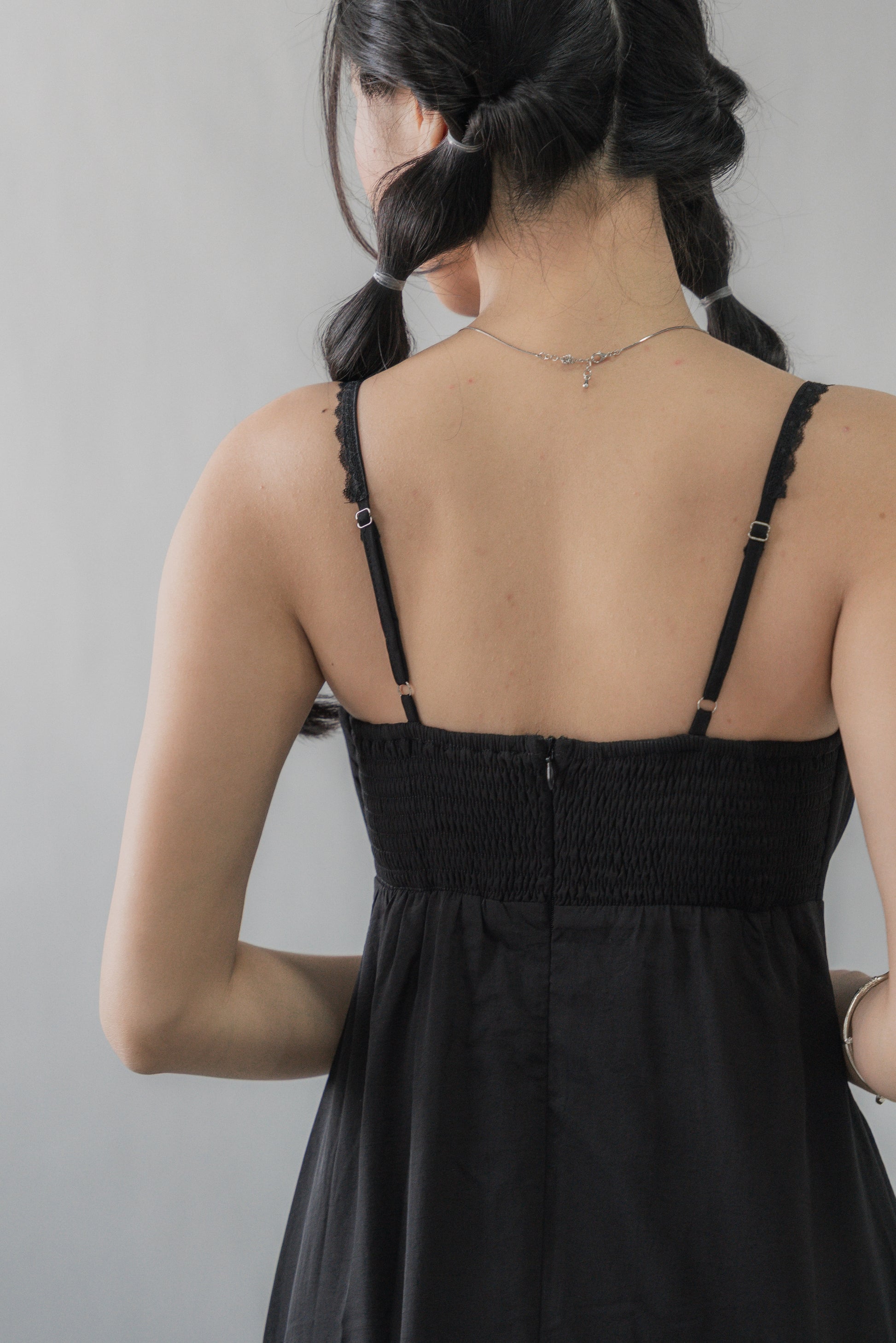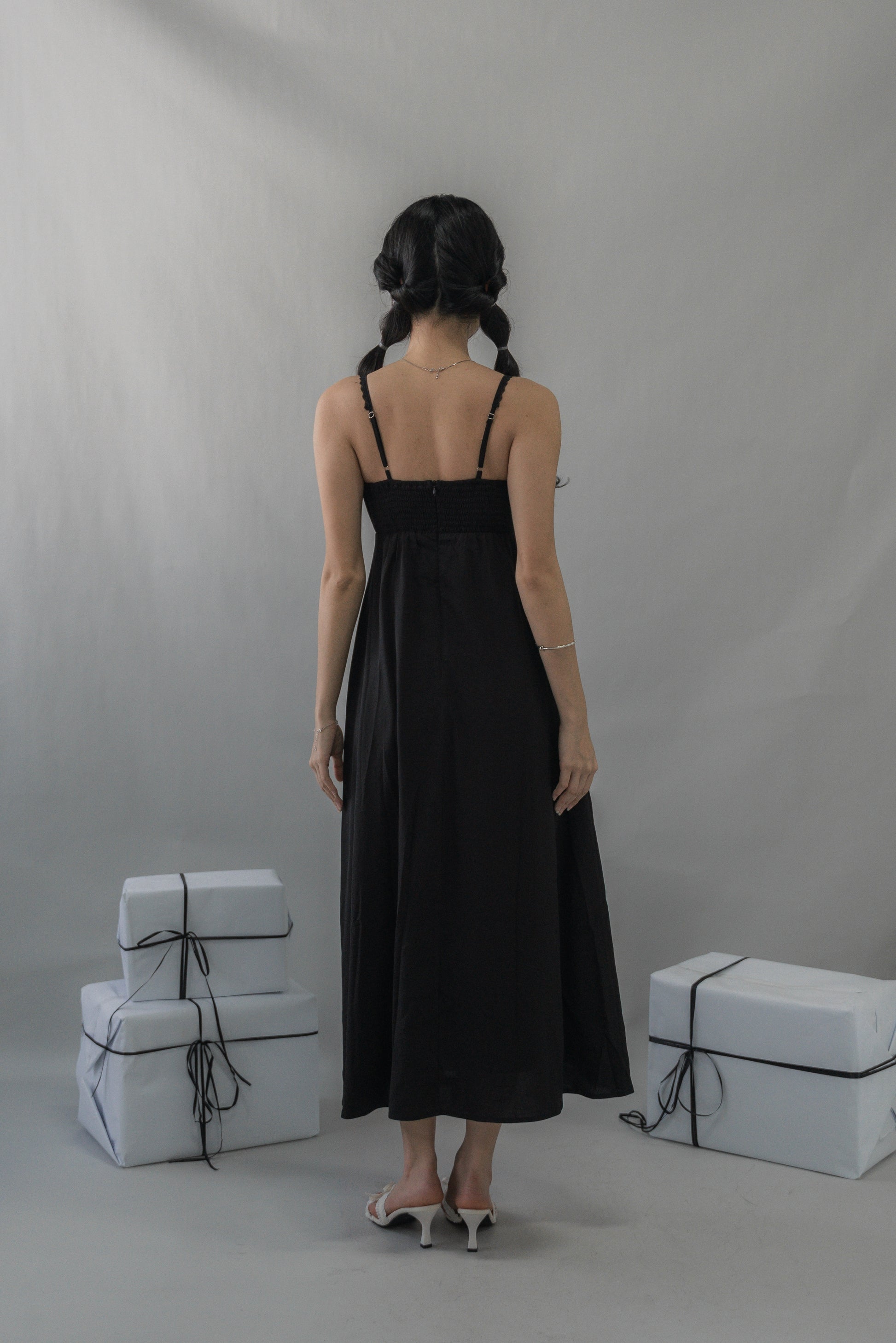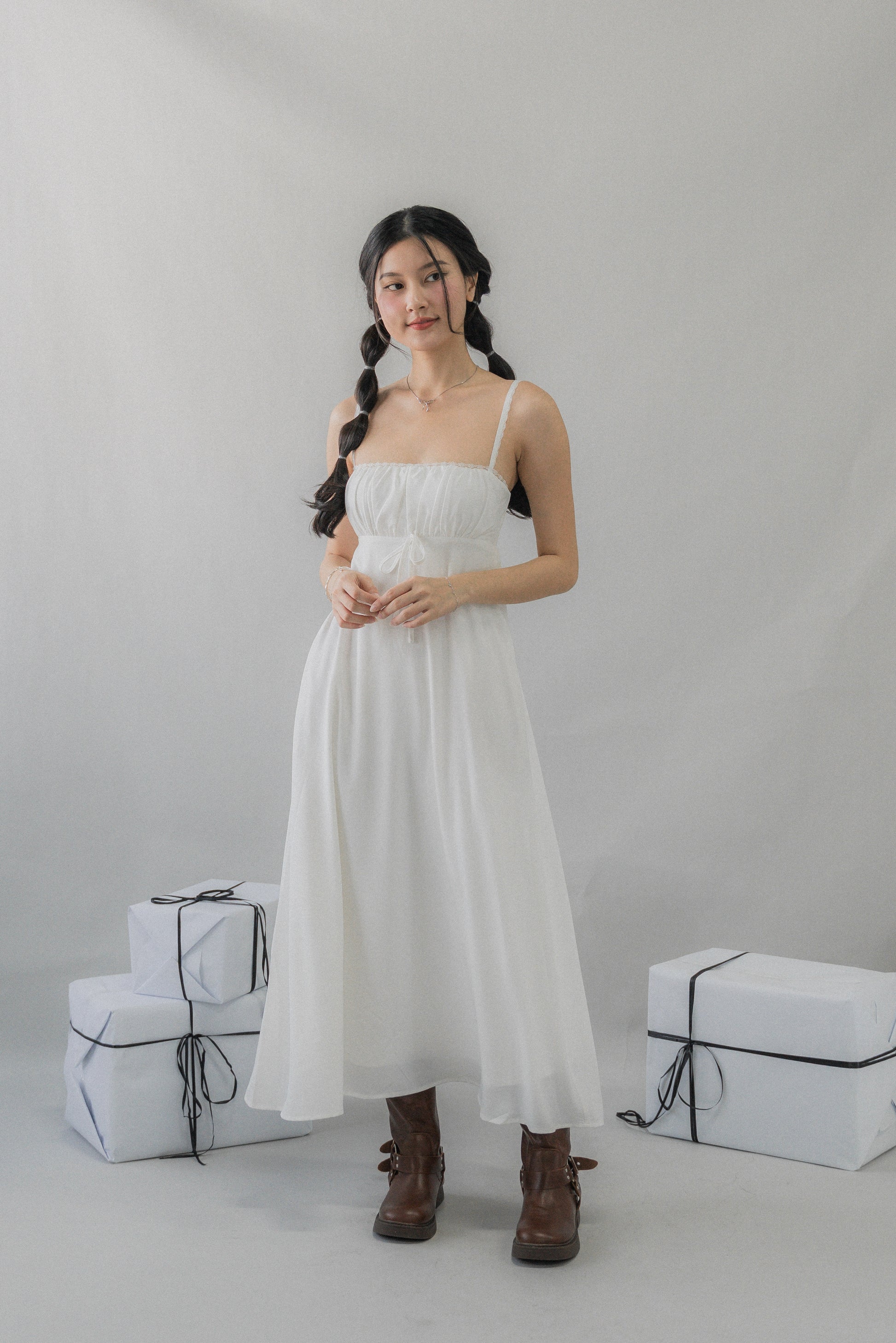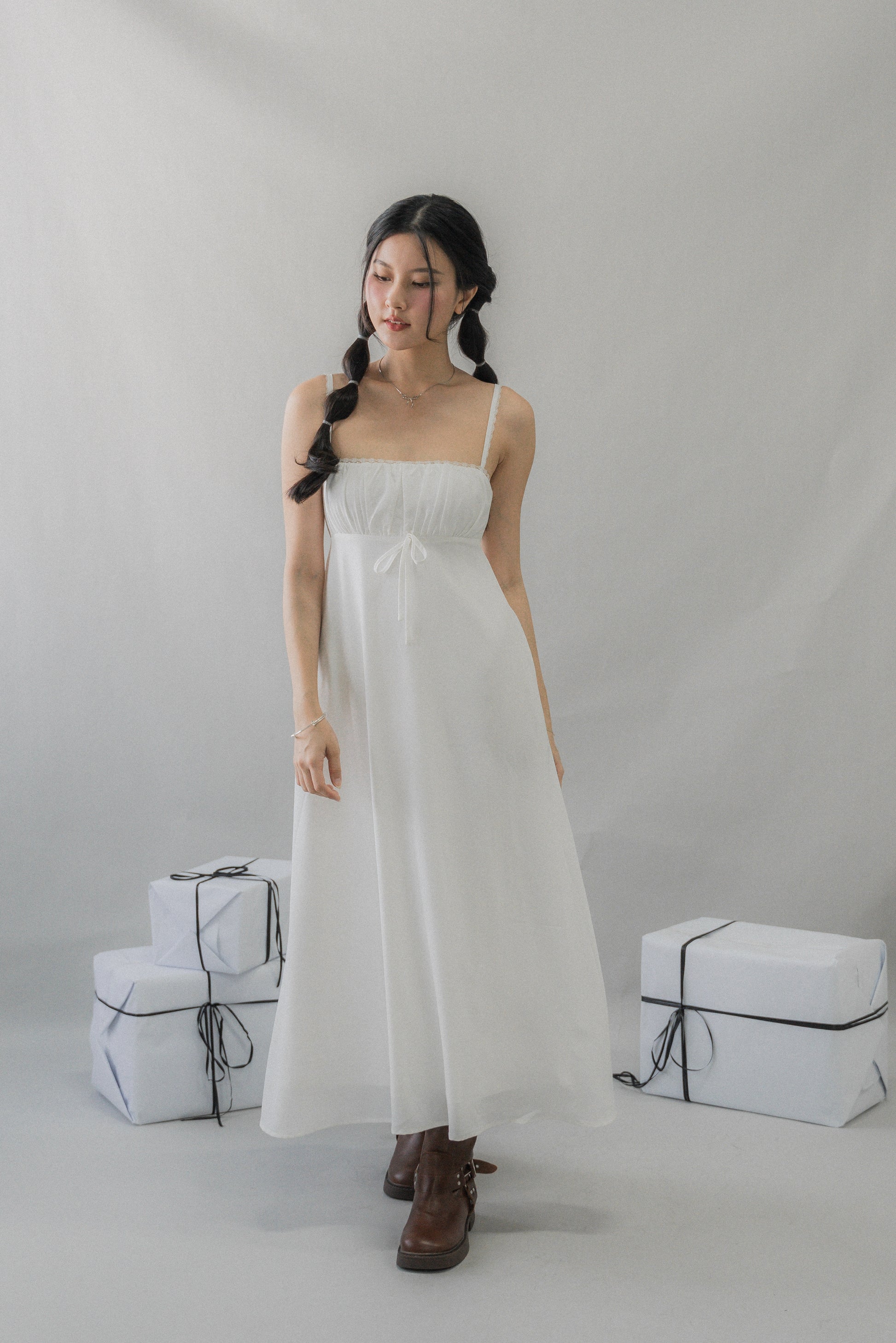 Kate – Romantic ease in every detail. With delicate lace-trim straps, a gathered bodice, and a dainty ribbon tie at the front, Katherine exudes soft femininity in a flowing maxi cut. Lightly padded for fuss-free wear and designed with hidden pockets, it’s the kind of dress that takes you from dreamy afternoons to elegant evenings with timeless grace.