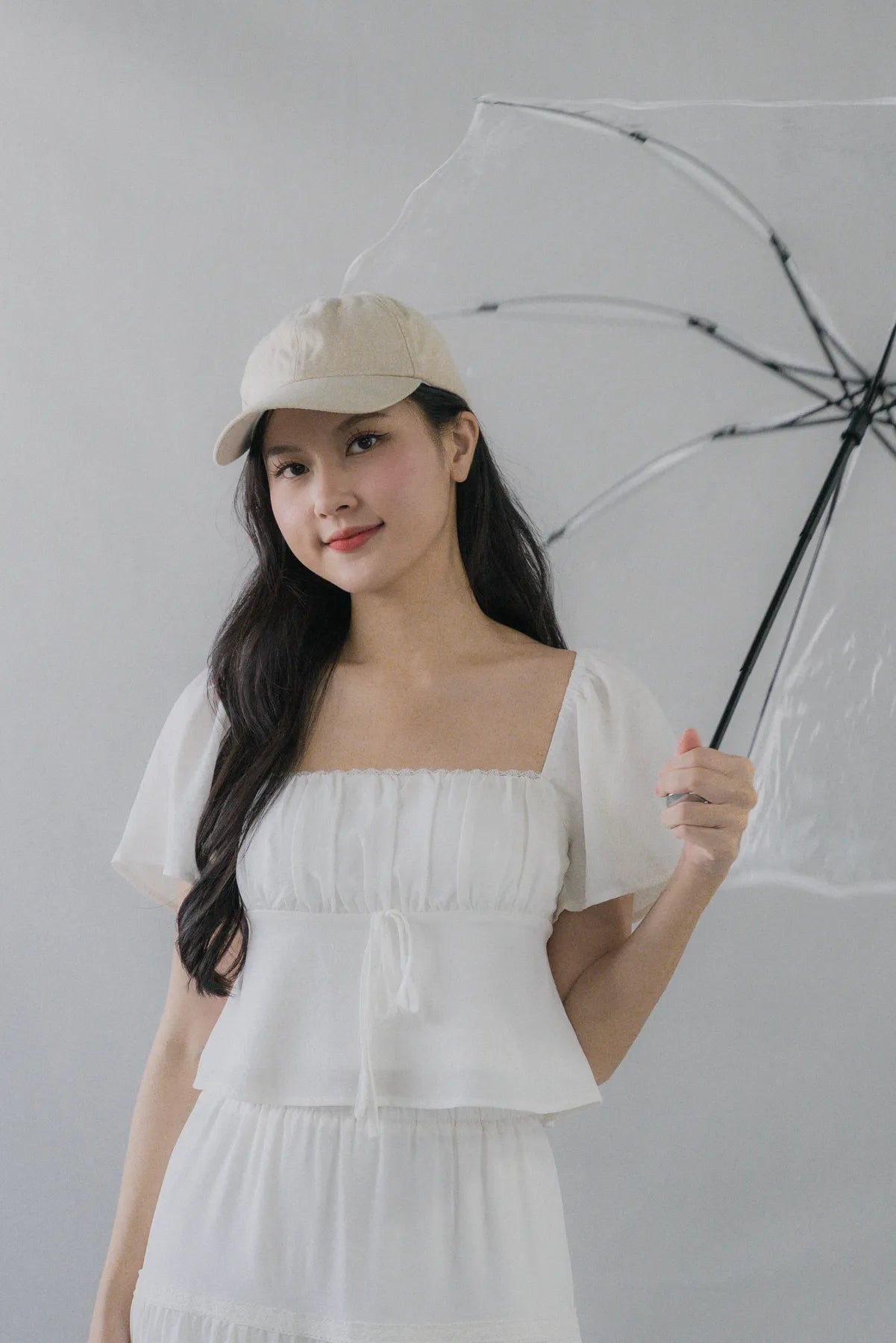 Kiara Flutter Sleeves Top – Soft, sweet, and quietly feminine. With lace-trim edges, flowy sleeves, and a ribbon-tie front, this padded babydoll top brings a gentle, romantic silhouette to everyday dressing. The gathered bodice and subtle flared hem add shape while keeping things light and pretty, making it your go-to for moments when you want to feel sweet and softly styled.