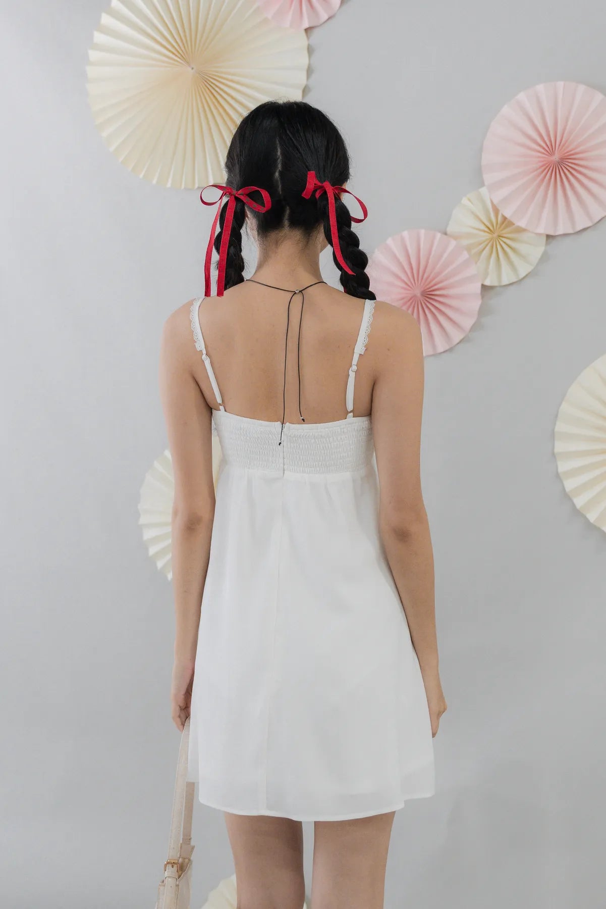 Features: Fully concealed back zipper; elastic smocked back; adjustable shoulder straps; removable individual bust padding