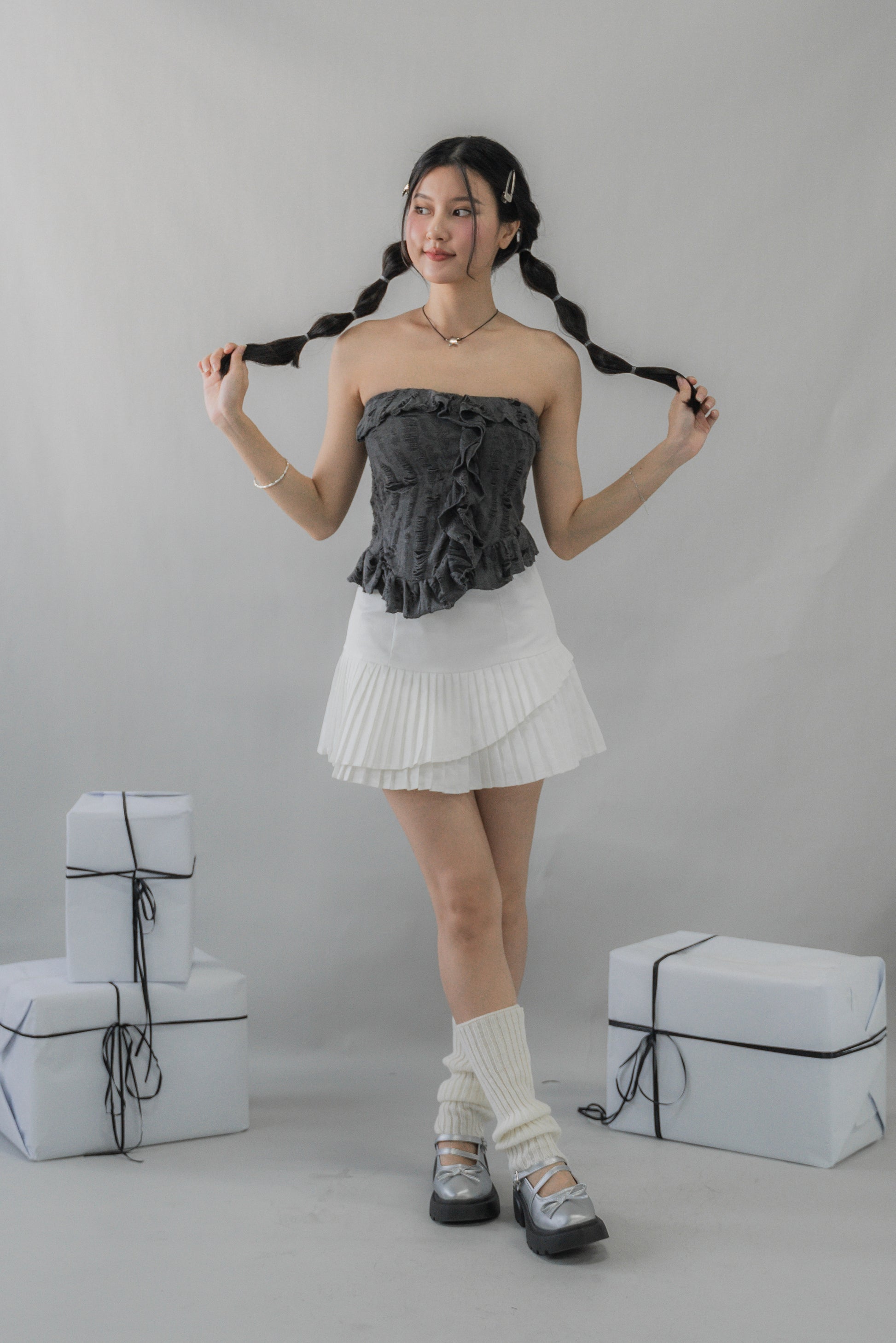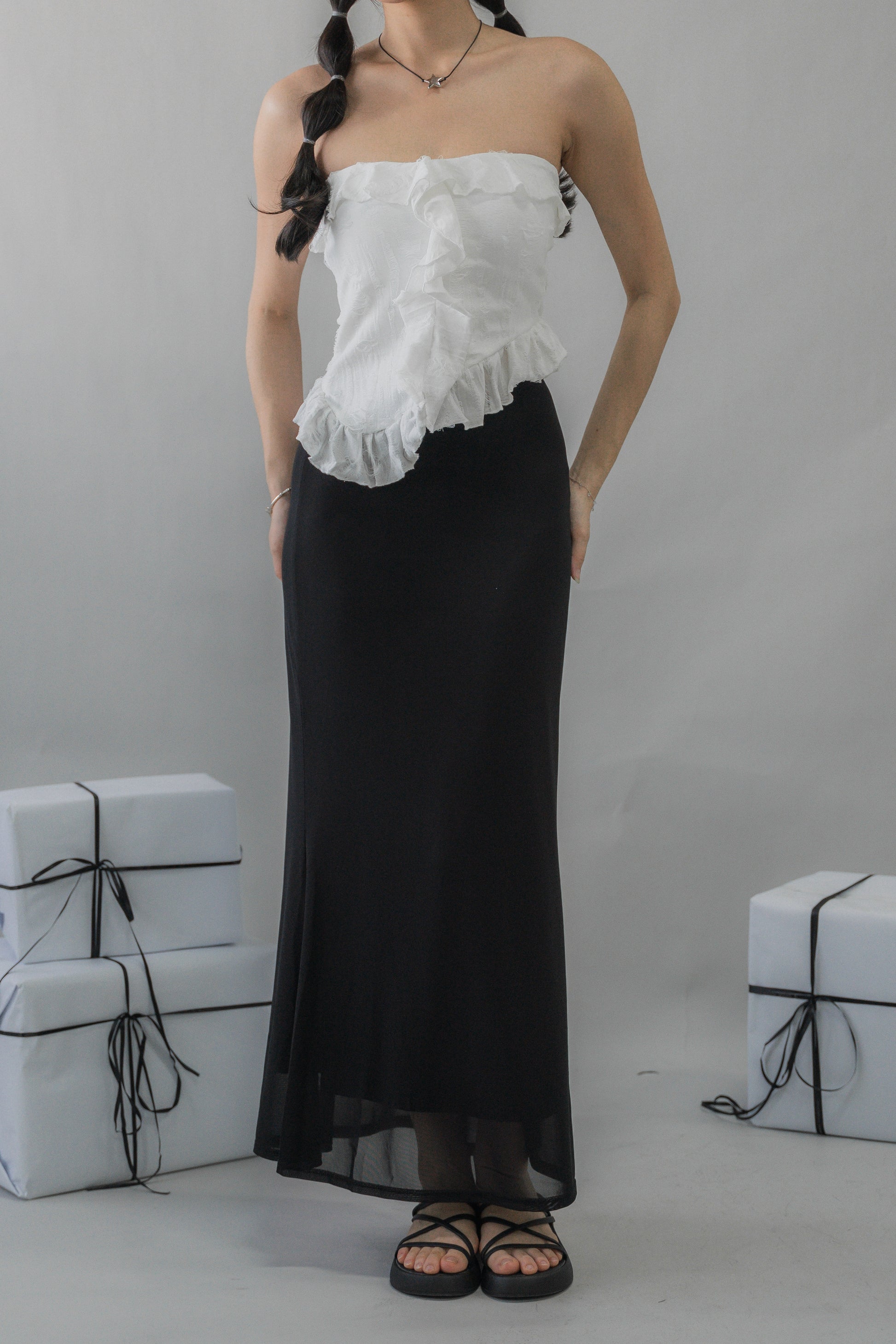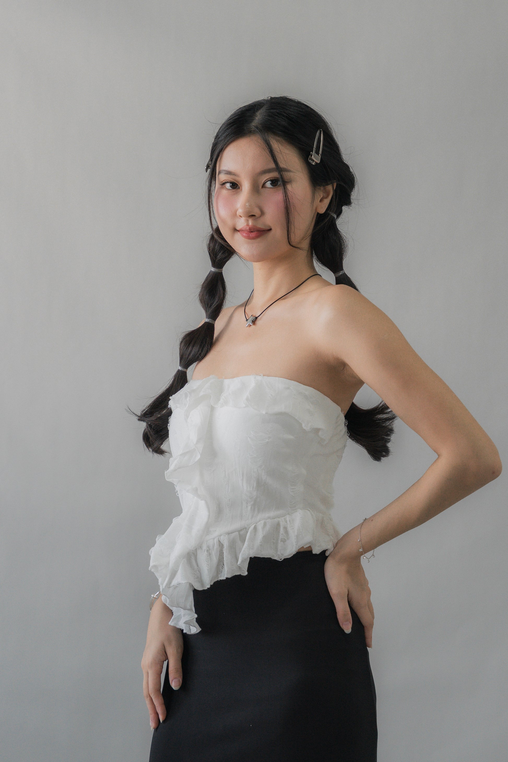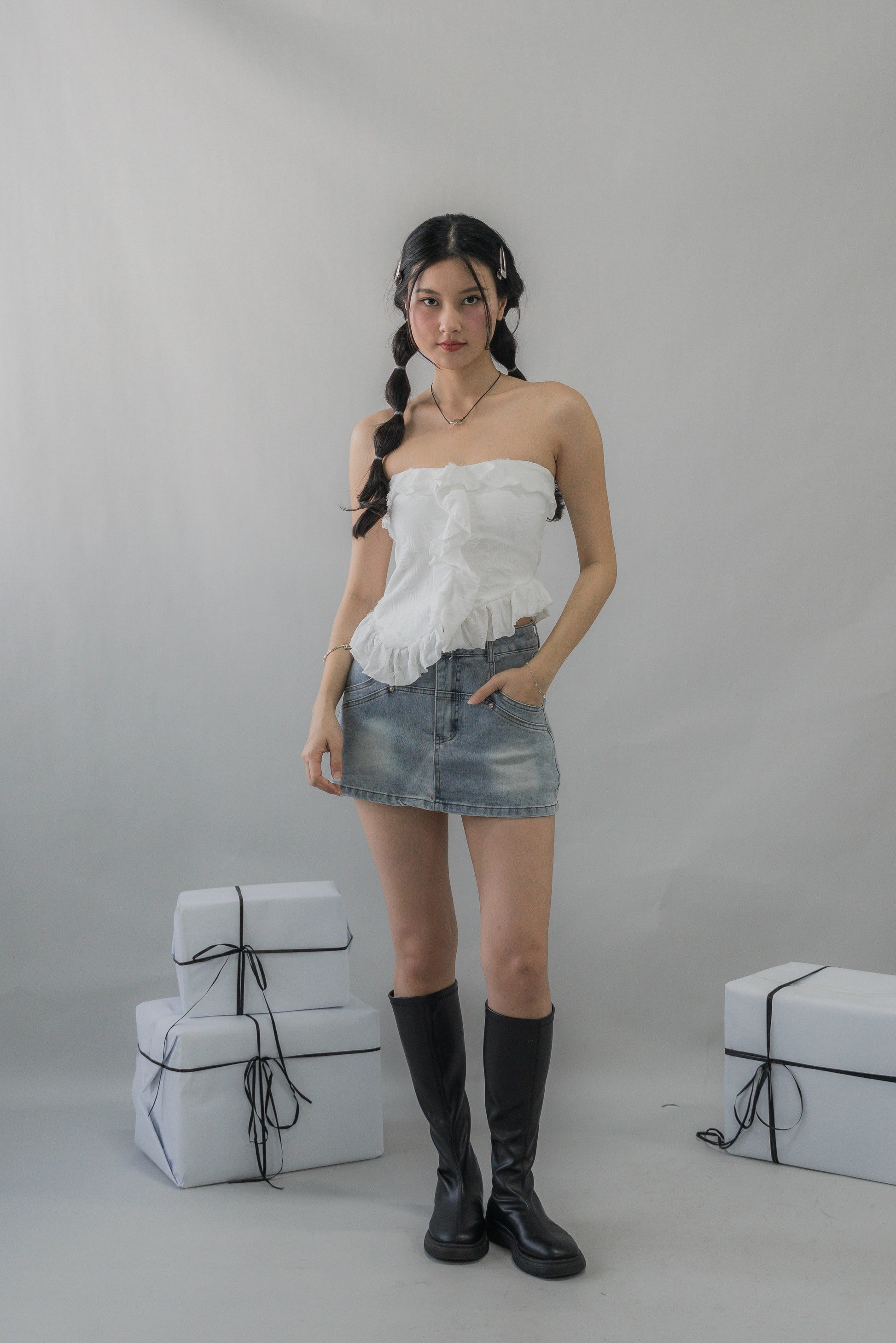 Denise – Effortlessly bold with an edge. Featuring distressed textured fabric and soft ruffle accents, Denise brings a statement twist to the classic tube silhouette. Lightly padded for secure, fuss-free wear, this flattering top pairs seamlessly with denim, pants, or skirts, making it perfect for nights out, casual weekends, or any moment that calls for confident style.